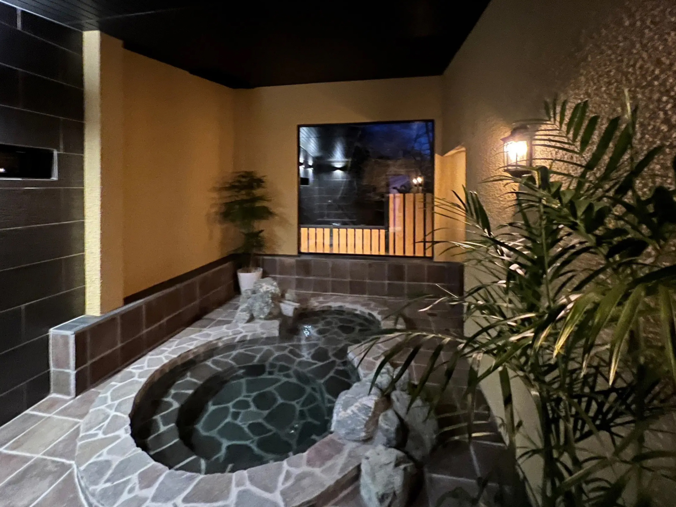 館内施設 : 貸切露天風呂「鹿覗きの湯」、貸切内湯「観月の湯」、薬王岩盤浴、天下人サウナ