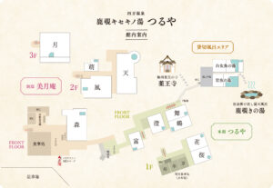 館内施設 : 貸切露天風呂「鹿覗きの湯」、貸切内湯「観月の湯」、薬王岩盤浴、天下人サウナ