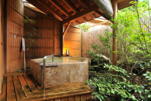 館内施設 : 貸切露天風呂「鹿覗きの湯」、貸切内湯「観月の湯」、薬王岩盤浴、天下人サウナ