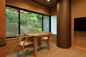 館内施設 : 貸切露天風呂「鹿覗きの湯」、貸切内湯「観月の湯」、薬王岩盤浴、天下人サウナ