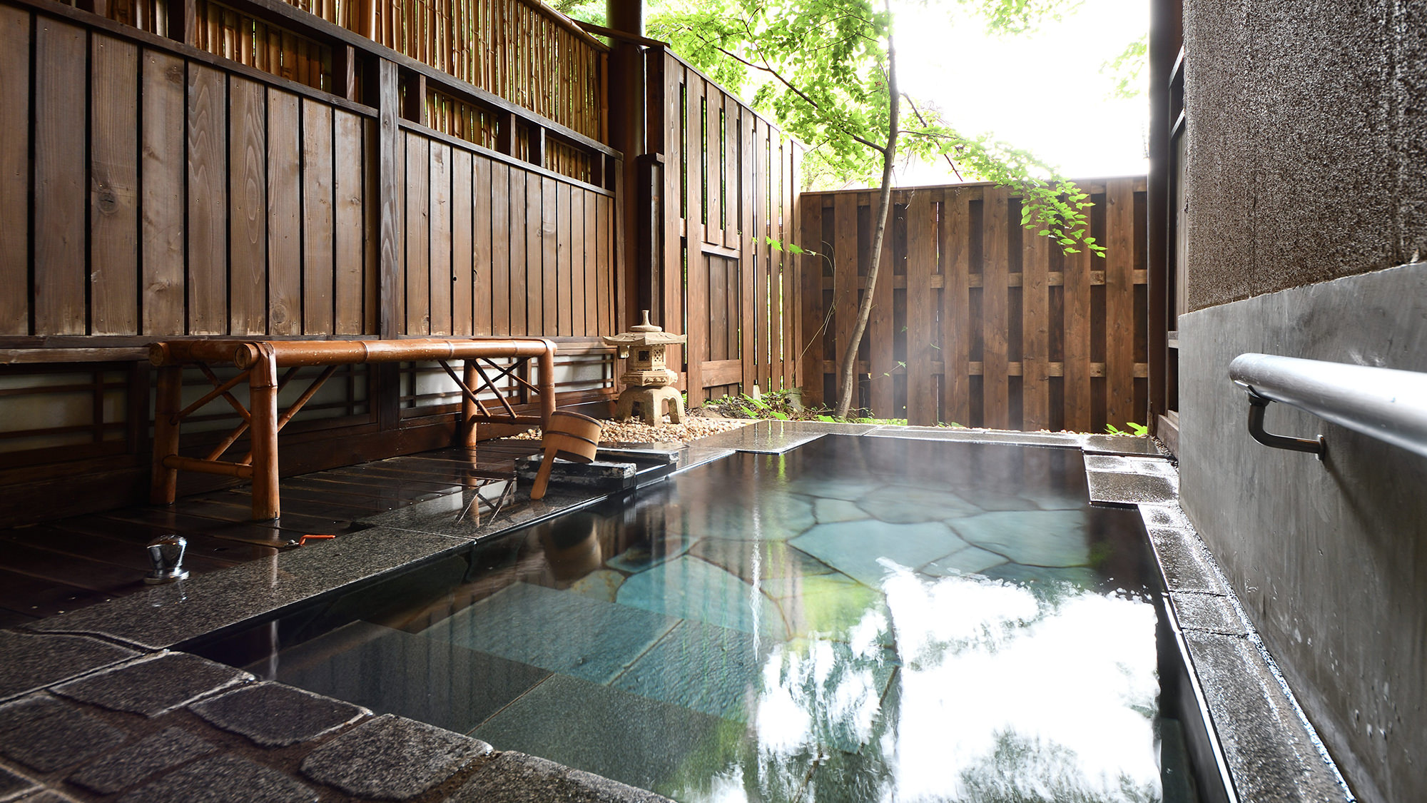 館内施設 : 貸切露天風呂「鹿覗きの湯」、貸切内湯「観月の湯」、薬王岩盤浴、天下人サウナ