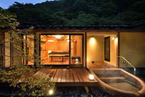 館内施設 : 貸切露天風呂「鹿覗きの湯」、貸切内湯「観月の湯」、薬王岩盤浴、天下人サウナ