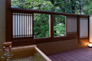 館内施設 : 貸切露天風呂「鹿覗きの湯」、貸切内湯「観月の湯」、薬王岩盤浴、天下人サウナ