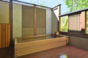 館内施設 : 貸切露天風呂「鹿覗きの湯」、貸切内湯「観月の湯」、薬王岩盤浴、天下人サウナ