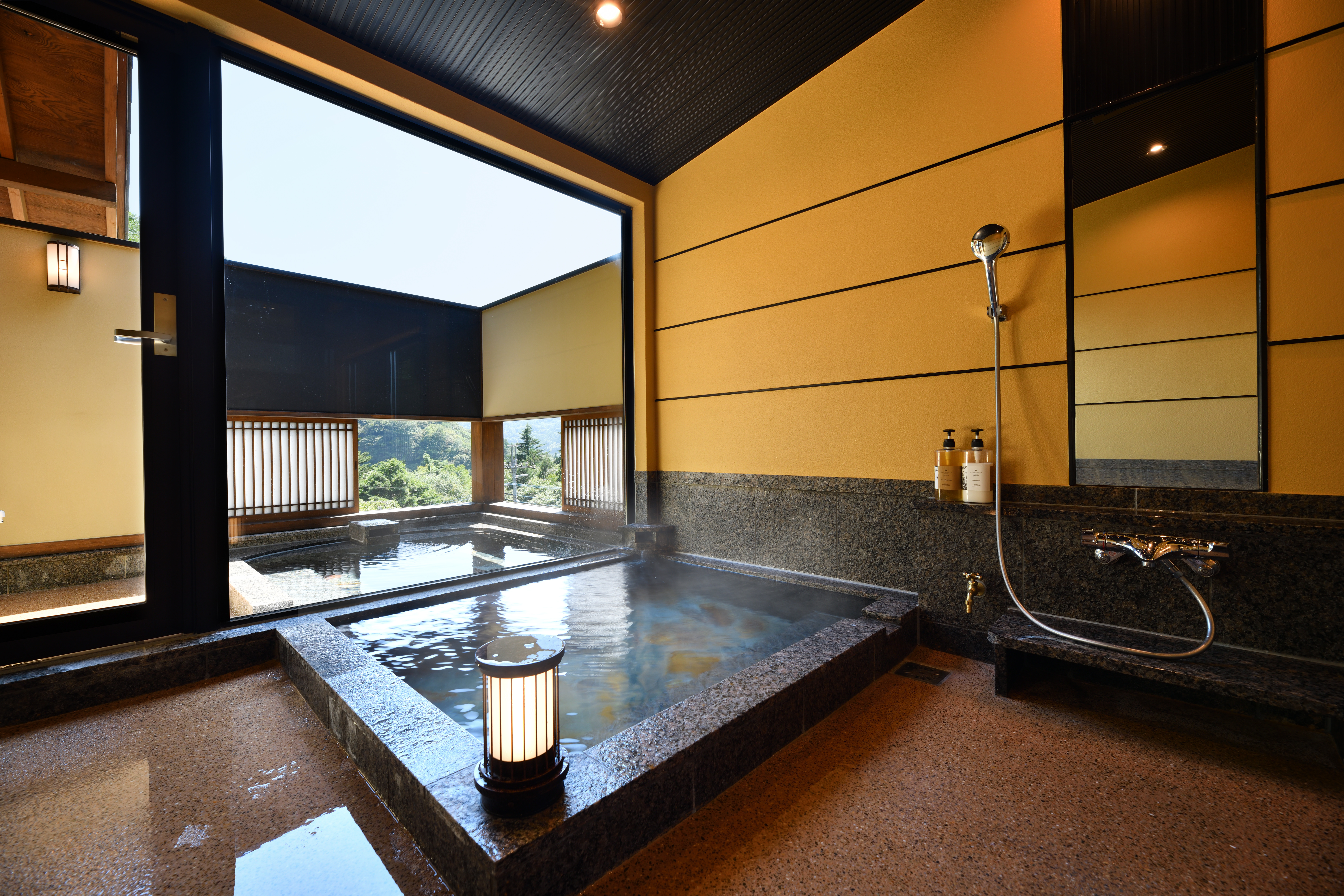 館内施設 : 貸切露天風呂「鹿覗きの湯」、貸切内湯「観月の湯」、薬王岩盤浴、天下人サウナ