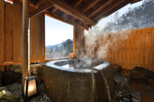 館内施設 : 貸切露天風呂「鹿覗きの湯」、貸切内湯「観月の湯」、薬王岩盤浴、天下人サウナ